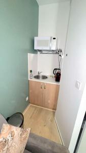 Zimmer: 1This apartment consists of 1 living room, 1 separate bedroom and 1 bathroom with a shower. The apartment's kitchenette, which has a microwave, is available for cooking and storing food. The apartment features tiled floors, a seating area with a flat-screen TV with cable channels, a tea and coffee maker, a dining area, as well as a sofa. The unit offers 1 bed.