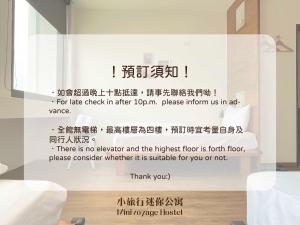 Mini Voyage Hostel se nachází 10 minut jízdy od Qixingtanu a 30 minut jízdy od útesu Qingshui. V pěší vzdálenosti najdete různé obchody a restaurace.