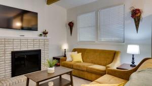 La casa con aire acondicionado en Mins To Downtown! Ping-Pong&Pets - Halcyon Hangout cuenta con 3 dormitorios, TV, sala de estar, zona de comedor y cocina con nevera.