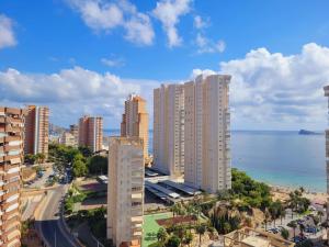 Beachfront Location: 5 minute walk to the Beach - Torres Residencial Miranda in Benidorm offers direct beachfront access with stunning sea views. Guests can relax on the terrace or take a dip in the seasonal outdoor swimming pool.
