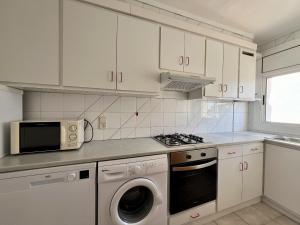 The well-fitted kitchen features a stovetop, a refrigerator, a dishwasher and kitchenware. The spacious apartment offers a washing machine, a tea and coffee maker, a terrace with sea views as well as a private bathroom featuring a bath.