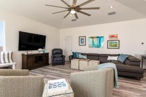 This holiday home features a private pool. Boasting a private entrance, this spacious holiday home also features 6 separate bedrooms and 7 bathrooms with a shower. Guests can make meals in the kitchen that has a refrigerator, a dishwasher, kitchenware and an oven. The air-conditioned holiday home features a TV with cable channels, a washing machine, a tea and coffee maker, a barbecue as well as sea views. The unit has 7 beds.