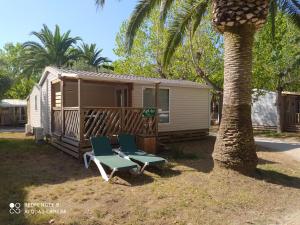 Boasting a private entrance, this air-conditioned mobile home comes with 1 living room, 2 separate bedrooms and 1 bathroom with a shower and a hairdryer. Guests will find a refrigerator, kitchenware, a microwave and a tea and coffee maker in the fully equipped kitchen. The mobile home also includes a barbecue. The mobile home features a seating area, a dining area, as well as a terrace and an outdoor dining area. The unit has 4 beds.