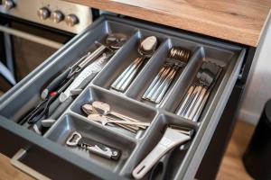 Apartmán v Möbliertes Wohnen - Winnie má 1 ložnici, obývací prostor, plně vybavenou kuchyň a 1 koupelnu. Apartmán má také koupelnu.