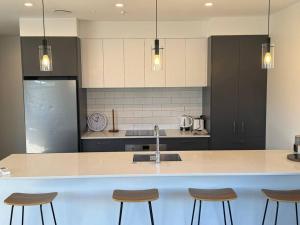 Дом для отпуска в Modern & Homely - Double Garage располагает кондиционером, 2 спальнями, гостиной, 1 ванной комнатой и кухней с холодильником и посудомоечной машиной.