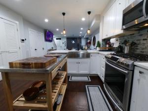 Apartmán Modern, Beautiful, 3 Bd, 3 Ba Metro, and Free Parking zahrnuje 1 ložnici, TV s plochou obrazovkou a kuchyň.