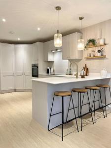 The holiday home comes with 3 bedrooms, 1 bathroom, bed linen, towels, a flat-screen TV with streaming services, a dining area, a fully equipped kitchen, and a patio with garden views. Modern, central bungalow with Large Garden includes an outdoor dining area.