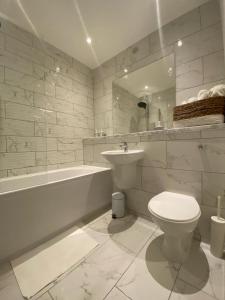 Apartament MODERN APARTMENT-GREENWICH/WOOLWICH obejmuje sypialnię, salon, jadalnię i kuchnię z lodówką. W obiekcie MODERN APARTMENT-GREENWICH/WOOLWICH znajduje się telewizor z płaskim ekranem. Ręczniki i pościel są dostępne w apartamencie.