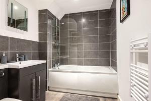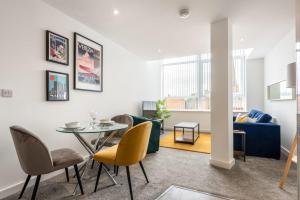 Questo appartamento prevede 1 camera da letto, un soggiorno e una cucina con utensili, frigorifero e forno. Lenzuola e asciugamani sono a vostra disposizione presso Modern 1 Bed Central Rotherham Apartment.