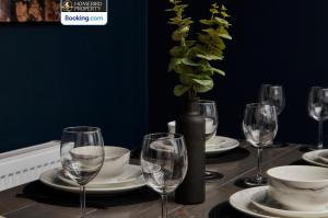 La casa en Modern 4Bedroom House By Homebird Property Management Short Lets & Serviced Accommodation Leeds With Private Parking & Garden cuenta con 4 dormitorios, zona de estar, TV de pantalla plana, 2 baños con ducha y cocina con nevera y lavavajillas. La casa o chalet Modern 4Bedroom House By Homebird Property Management Short Lets & Serviced Accommodation Leeds With Private Parking & Garden proporciona toallas y ropa de cama.