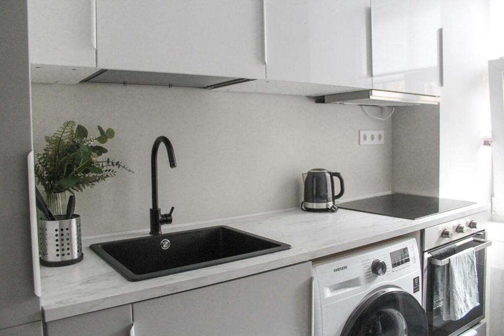 The apartment features 1 bedroom and 1 bathroom with a shower and free toiletries. The apartment's kitchen, which has a refrigerator and kitchenware, is available for cooking and storing food. The apartment offers a washing machine, soundproof walls, a tea and coffee maker, a dining area, as well as a flat-screen TV. V této ubytovací jednotce je k dispozici 1 postel.