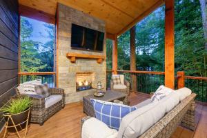 Questa casa vacanze con aria condizionata comprende 1 camera da letto, un soggiorno, una cucina con utensili, frigorifero e macchina da caffè, e 1 bagno con doccia e vasca idromassaggio. Lenzuola e asciugamani sono inclusi nell'offerta di Modern Chic Design - Dreamy Couples Cabin! Hot Tub.