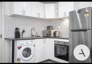 Cette maison de vacances avec climatisation comporte 1 chambre, une télévision à écran plat, ainsi qu’une cuisine avec un réfrigérateur et un four. Le linge de lit et les serviettes sont mis à disposition par Modern cottage central location.