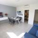 The holiday home features 1 bedroom, 1 bathroom, bed linen, towels, a TV with cable channels, a dining area, a fully equipped kitchen, and a terrace with garden views.