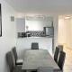 Modern one bedroom apartment in Cannes cuenta con aire acondicionado, 1 dormitorio, sala de estar, cocina equipada con nevera y baño con ducha y secador de pelo. El apartamento el alojamiento dispone de toallas y ropa de cama.