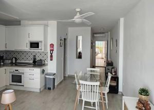 Questo appartamento prevede 2 camere da letto, una cucina con frigorifero e forno e 1 bagno con vasca o doccia, set di cortesia e lavatrice. Lenzuola e asciugamani sono a vostra disposizione presso Modern Seaview Apartment - Mojacar Beach.