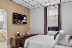 Apartmán Modern Studio - Parking Available - 15 min NYC zahrnuje 1 ložnici, TV s plochou obrazovkou a kuchyň.