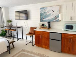 Klimatizovaný apartmán v Modern Surf Chic Studio condo má 1 ložnici, 1 koupelnu a plně vybavený kuchyňský kout s mikrovlnnou troubou a lednicí. V koupelně ubytování Modern Surf Chic Studio condo nechybí sprcha ani fén. V ubytování ubytování jsou pro hosty připraveny ručníky a ložní prádlo.