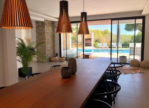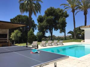Questa villa dispone di 5 camere da letto, 5 bagni, lenzuola, asciugamani, una TV a schermo piatto, una zona pranzo, una cucina con utensili e una terrazza con vista sulla piscina.