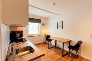 Moderne, geräumige Wohnung neco appartments nabízí ubytování, v němž najdete posezení s TV s plochou obrazovkou a vlastní koupelnu s fénem a sprchou. K dispozici je také myčka nádobí, trouba, varná deska a varná konvice.