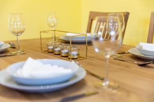 The spacious apartment has 1 bedroom, a flat-screen TV with streaming services, a fully equipped kitchen with a dishwasher and an oven, a washing machine, and 1 bathroom with a bath. Towels and bed linen are available at the property. For added privacy, Moderne Dachgeschosswohnung - Parkplatz - Waschmaschine has a private entrance and soundproofing.