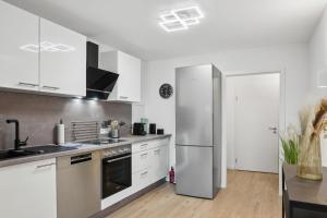 Ubytovací jednotky v Moderne KüstenHyggen mit Garten&Parkplatz - Hermannliving disponují posezením s rozkládací pohovkou, satelitní TV s plochou obrazovkou, dobře vybavenou kuchyní s jídelním koutem a koupelnou s fénem. K vybavení ubytování Moderne KüstenHyggen mit Garten&Parkplatz - Hermannliving patří také lednice, trouba, varná deska, kávovar a rychlovarná konvice.