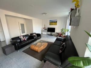 Questo appartamento con terrazza e vista sul giardino presenta 4 camere da letto, un soggiorno, una TV a schermo piatto, una cucina con frigorifero e lavastoviglie e 2 bagni con doccia. Presso Modernes Monteurhaus mit viel Platz la dotazione include lenzuola e asciugamani.