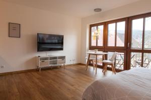 This apartment is comprised of a kitchenette, a seating area, 1 separate bedroom and 1 bathroom with a shower and a hairdryer. Guests can make meals in the kitchenette that is fitted with a stovetop, a refrigerator, kitchenware and an oven. Featuring a balcony with garden views, this apartment also offers a washing machine and a flat-screen TV. V této ubytovací jednotce je k dispozici 1 postel.