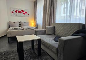 Apartmán Modernes und gemütliches Studio in Karlsruhes Zentrum - APOLONIAliving zahrnuje 1 ložnici, plně vybavenou kuchyň s lednicí a troubou a 1 koupelnu se sprchou. V apartmánu ubytování najdete TV s plochou obrazovkou a koupelnu s fénem.