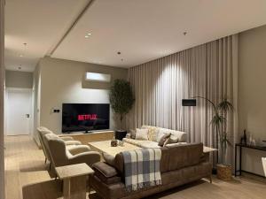 This spacious apartment is comprised of 1 living room, 2 separate bedrooms and 3 bathrooms with a shower and free toiletries. Meals can be prepared in the well-fitted kitchen, which is fitted with a refrigerator, kitchenware, an oven and a microwave. This apartment features air conditioning, a washing machine, a flat-screen TV and a terrace. The unit offers 5 beds.