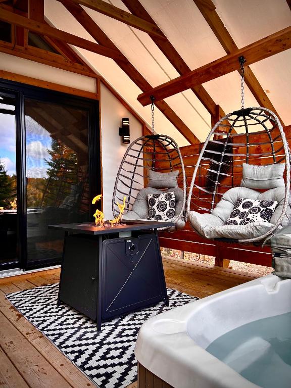 Die in Petite-Rivière-Saint-François in der Region Quebec gelegene Unterkunft Momentôm Refuges Nature bietet kostenloses WLAN, Grillmöglichkeiten, eine Terrasse und einen kostenlosen Privatparkplatz. Basilika von Sainte-Anne-de-Beaupré ist in 45 km Entfernung zu erreichen. Die Unterkunft verfügt über einen Whirlpool und einen Whirlpool.