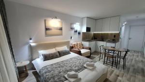 The apartment features 1 bedroom and 1 bathroom with a shower and bathrobes. Guests can make meals in the kitchen that is equipped with a stovetop, a refrigerator, a microwave and a toaster. Featuring a balcony with mountain views, this apartment also provides a wardrobe and a flat-screen TV. The unit offers 2 beds.