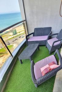 Cet appartement avec climatisation se compose de 3 chambres, d'un salon, d'une cuisine entièrement équipée avec un réfrigérateur et une machine à café, ainsi que de 2 salles de bains avec une douche et un sèche-cheveux. Des serviettes et du linge de lit sont disponibles à Mont Blanc :Appartement, vue sur mer à 2 minutes de la gare..