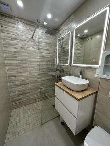 Klimatizovaný apartmán ubytování má 2 ložnice, obývací pokoj, plně vybavenou kuchyň s lednicí a myčkou a 1 koupelnu. V koupelně ubytování ubytování nechybí sprcha ani fén.