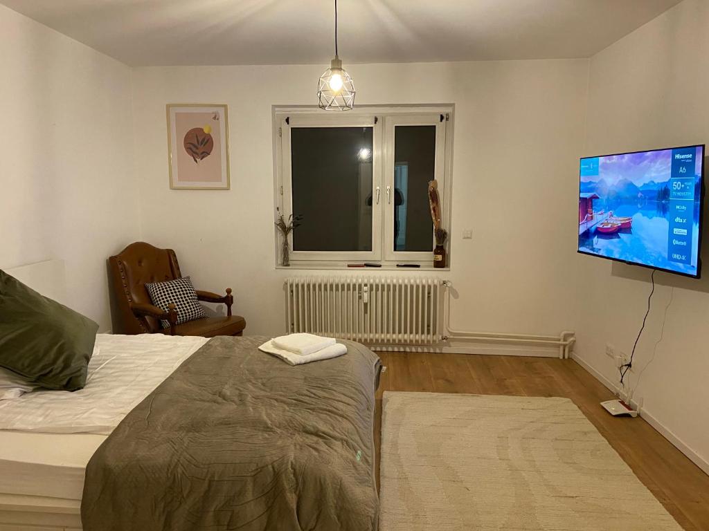 Questo appartamento presenta 2 camere da letto, una TV a schermo piatto e una cucina con utensili, frigorifero, lavastoviglie, lavatrice, forno e piano cottura. Asciugamani e lenzuola sono inclusi nei servizi di Monteur- und Ferienwohnung mit sehr guter Anbindung.