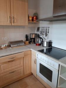 W apartamencie znajduje się sypialnia, salon, kuchnia z ekspresem i lodówką oraz łazienka z prysznicem i kosmetykami. Ręczniki i pościel są dostępne w apartamencie Monteurswohnung Monteurunterkunft.