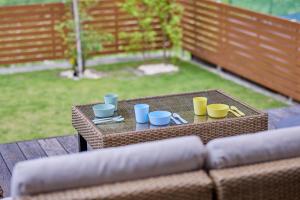 The air-conditioned holiday home has 3 bedrooms and 1 bathroom with a bath and a shower. Meals can be prepared in the well-fitted kitchen, which features a refrigerator, a microwave and a tea and coffee maker. Boasting a terrace with garden views, this holiday home also features a washing machine and a flat-screen TV with streaming services. V této ubytovací jednotce se nachází 7 postelí.