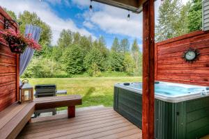 The hot tub and spa bath are the standout features of this holiday home. Featuring a private entrance, this air-conditioned holiday home consists of 1 living room, 2 separate bedrooms and 2 bathrooms with a shower and a hairdryer. Guests will find a stovetop, a refrigerator, a dishwasher and kitchenware in the fully equipped kitchen. The holiday home also offers a barbecue. Boasting a terrace with garden views, this holiday home also provides a washing machine and a flat-screen TV with cable channels. V této ubytovací jednotce je k dispozici 3 postele.