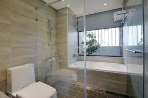 Camera matrimoniale climatizzata che include una TV a schermo piatto con canali via cavo e un bagno privato. L'unità è dotata di 1 letto.