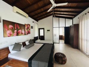 Boasting a private entrance, this air-conditioned apartment features 1 living room, 1 separate bedroom and 1 bathroom with a bath and a shower. The apartment's kitchen, which features a refrigerator, is available for cooking and storing food. The apartment has a wardrobe, an electric kettle, as well as a terrace with garden views. The unit has 2 beds.