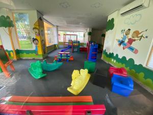 Mountain, lake and pool view apartment dispone di un'area giochi per bambini.
