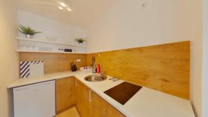 Questo appartamento con 1 camera da letto ha un soggiorno con TV a schermo piatto, una cucina con utensili e 1 bagno con asciugacapelli.