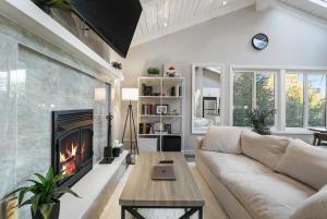 The hot tub and fireplace are the standout features of this holiday home. Boasting a private entrance, this air-conditioned holiday home features 1 living room, 3 separate bedrooms and 3 bathrooms with a bath and a shower. Guests will find a stovetop, a refrigerator, a dishwasher and an oven in the kitchen. The holiday home also comes with a barbecue. The spacious holiday home features a washing machine, a tea and coffee maker, a seating area, a flat-screen TV with streaming services, as well as garden views. The unit has 3 beds.