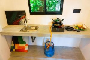 - Small kitchen area,