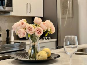 El apartamento con aire acondicionado en Mountain View New Luxury Condo at Banff Entrance consta de 2 dormitorios, sala de estar, cocina equipada con nevera y cafetera, y 2 baños con ducha y bañera de hidromasaje. El apartamento el alojamiento dispone de toallas y ropa de cama.