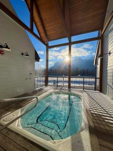 El apartamento Mountain View New Luxury Condo at Banff Entrance ofrece bañera de hidromasaje.