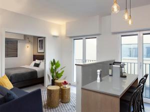 This spacious apartment consists of 1 living room, 2 separate bedrooms and 1 bathroom with a bath and free toiletries. In the kitchen, guests will find a stovetop, a refrigerator, a dishwasher and kitchenware. The air-conditioned apartment provides a flat-screen TV with cable channels, a washing machine, a coffee machine, a seating area as well as city views. V této ubytovací jednotce je k dispozici 3 postele.