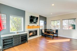 The hot tub and fireplace are the standout features of this holiday home. Boasting a private entrance, this air-conditioned holiday home features 1 living room, 3 separate bedrooms and 3 bathrooms with a shower and a hairdryer. Guests will find a stovetop, a refrigerator, a dishwasher and kitchenware in the well-equipped kitchen. The holiday home also comes with a barbecue. The spacious holiday home features a washing machine, a coffee machine, a wardrobe, tumble dryer and a flat-screen TV. The unit has 4 beds.