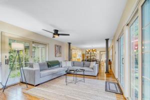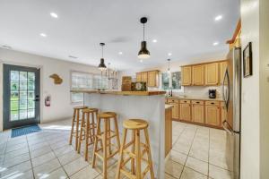 This holiday home boasts a hot tub and a fireplace. Featuring a private entrance, this air-conditioned holiday home consists of 1 living room, 3 separate bedrooms and 2 bathrooms with a walk-in shower and a bath. Guests will find a stovetop, a refrigerator, a dishwasher and kitchenware in the well-fitted kitchen. The holiday home also offers a barbecue. The spacious holiday home provides a flat-screen TV with streaming services, a washing machine, a tea and coffee maker, a seating area as well as garden views. V této ubytovací jednotce je k dispozici 5 postelí.