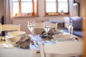Apartmán ubytování zahrnuje 2 ložnice, 1 koupelnu, ložní prádlo, ručníky, TV s plochou obrazovkou, jídelní kout a plně vybavenou kuchyň. Z terasy ubytování ubytování se otevírá výhled na město. Koupelna v Muschel je zařízena vanou, sprchou a fénem.